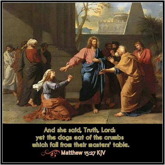 我不知道的緣由,耶穌很不客氣的對這不幸的女人冷言以對:「不好拿兒女的餅,丟給狗吃。」
