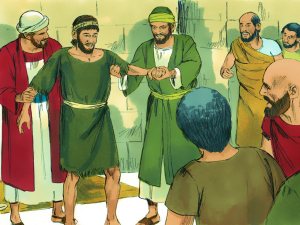 (他)就跳起來,站著,又行走。同他們進了殿,走著,跳著,讚美上帝。——《使徒行傳》3:8