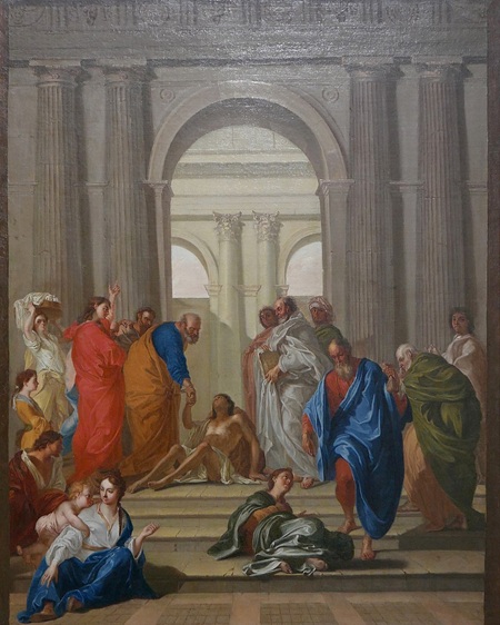 圖片來源/WIKIMEDIA COMMONS《彼得和約翰在耶路撒冷聖殿入口處治愈癱瘓病人》( St. Peter and St. John Healing the Paralytic at the Entrance to the Temple of Jerusalem),吉恩-弗朗索瓦·德·特洛伊(Jean-Françoisde Troy),1687年。