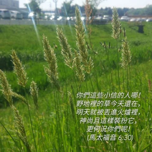 「你們這小信的人哪,野地裡的草,今天還在,明天就丟在爐裡,神還給他這樣的妝飾,何況你們呢?」(馬太福音 6:30)