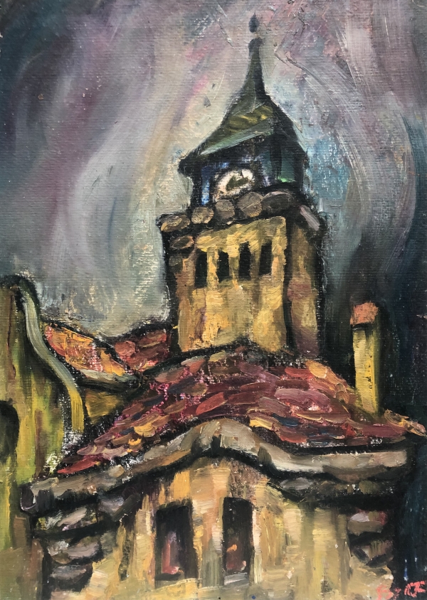 (草非1990年代在青島畫的兩幅基督教堂油畫寫生)
