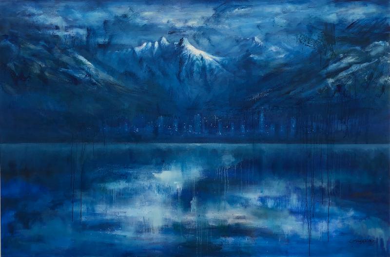 創作心得:作品名稱And There Was Morning “有早晨…”,出自聖經創世紀,是對生命光景充滿希望的詩意表達。畫面呈現了菲沙河北望所見的山水雲城,奪目的是迎接清晨第一縷陽光的雙獅雪峰,峻峭聖潔。山間霧靄之中珍隱著世界四大之一的淡水源地Capilano Shed.燈光點點的亮帶是大溫哥華的市景,霧繚影綽,恩滋充沛。並不顯眼的十字塔吊有著明確的隱喻表徵。