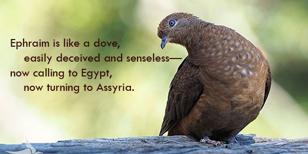 11 “Ephraim is like a dove, easily deceived and senseless– now calling to Egypt, now turning to Assyria.
