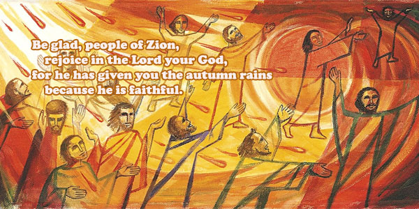 23 Be glad, O people of Zion, rejoice in the LORD your God, for he has given you the autumn rains in righteousness. He sends you abundant showers, both autumn and spring rains, as before.