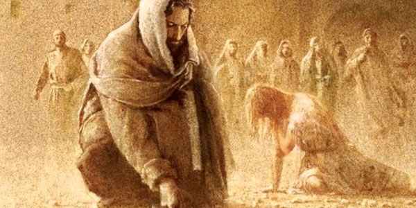 On verse 6b: Refusing to play their games, Jesus bends down on the ground and starts to write on the ground with his finger. What was Jesus doing? Different scholars have come up with various theories on what Jesus was doing. Some think Jesus was writing down the sins of the woman’s accusers. Some think Jesus was writing down Exodus 23:1. We don’t know for sure. For whatever reason the Apostle John and the Holy Spirit did not think it was necessary for us to know what exactly Jesus wrote. In any event it is worth noting that just as the Ten Commandments were said to be written by the finger of God (Exodus 31:18), here is Jesus writing into the dust of the earth with his finger (v6).