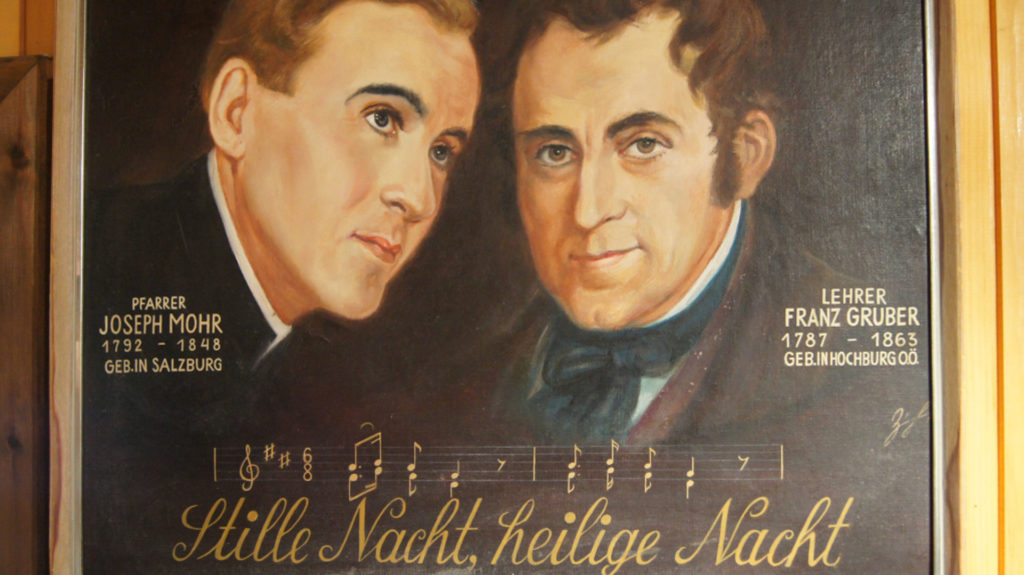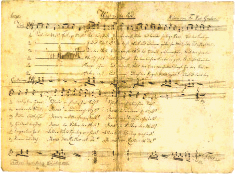 就在那个平安夜的晚上,一首伟大的圣诗在诗人激情的笔下完成了创作,但是真正让这首诗歌插上旋律的翅膀,飞越阿尔卑斯山脉流传到世界各地,还要注定等待它命运中一定要相遇的那个人,他就是格罗伯(Franz X. Gruber 1787-1863)。而这一等就是两年。